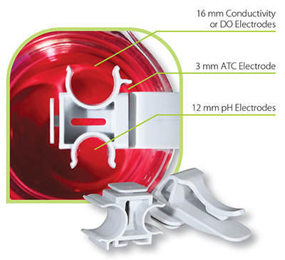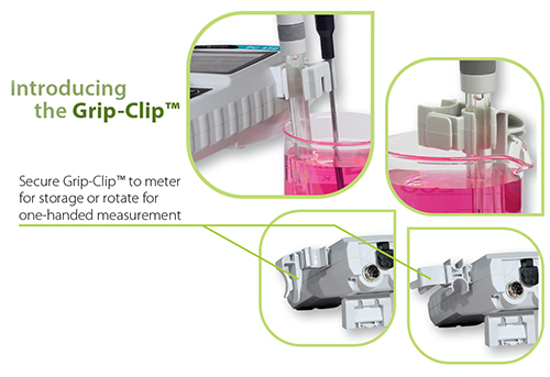 Product FeaturesUse this innovative electrode accessory to save time while preventing electrode damage. Designed for use with a 3 mm ATC electrode, 12 mm pH electrode, and a 16 mm conductivity or DO electrode. Attach the Grip-Clip™ to your instrument when not in use or for single-handed measurement. It secures to most beakers without the need for a separate electrode arm. Keeps electrode(s) suspended during use, away from dangerous stir bars and out of harm's way. Easy-access opening allows for electrode replacement without removal of the electrode storage bottle. Allows for quick height adjustment of your electrode(s) to suit your sample container and individual preference. Don't break another electrode bulb or waste time with clumsy holders – use the Grip-Clip™!