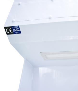 Partiküller ve dumanlar, paslanmaz çelik çalışma yüzeyinden aşağı doğru akar ve kontaminantlar çeşitli filtreler kullanılarak giderilir.